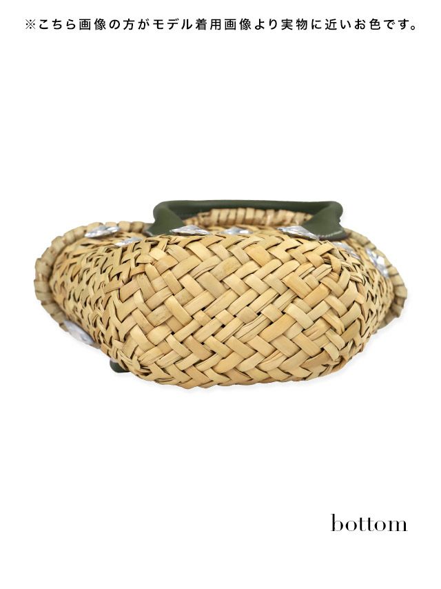水着小物 チェック巾着ショルダー&ビジュー付きストローミニかごバッグ