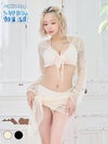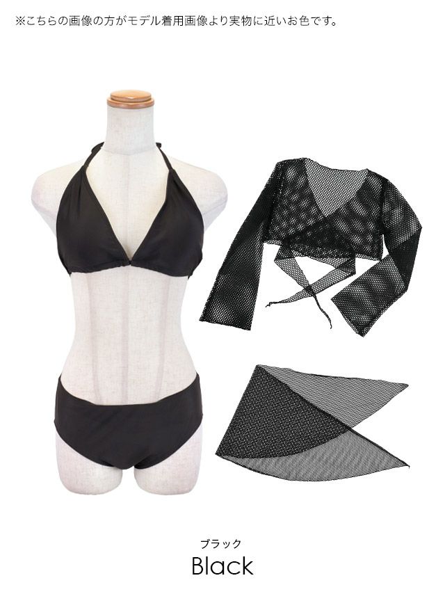 水着 2wayショート丈メッシュ編みボレロ&パレオ付き体型カバーセットアップホルターネックビキニ