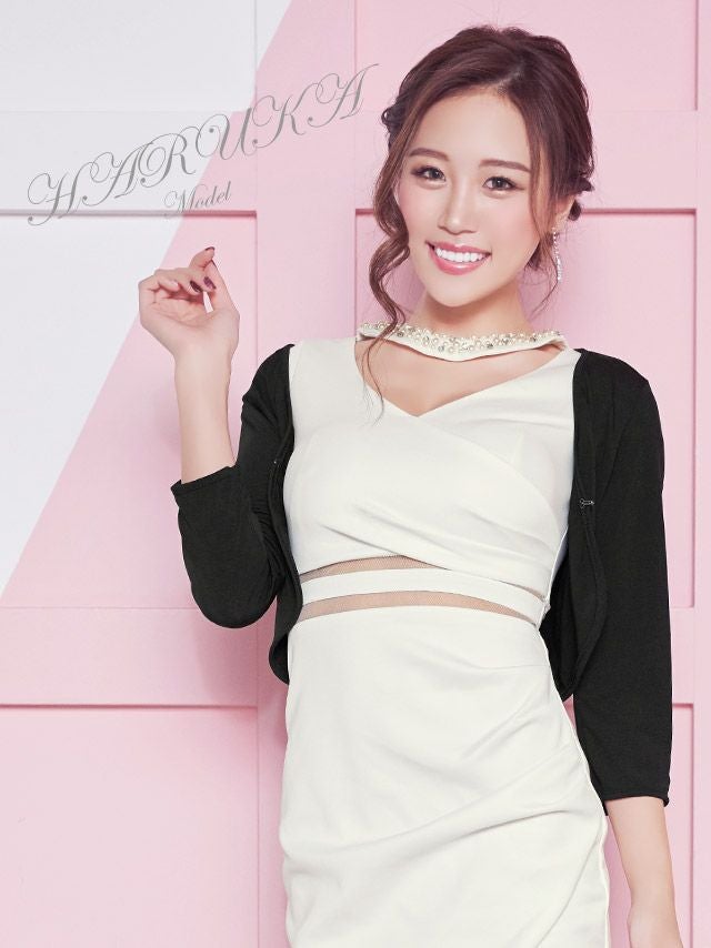5. ワンボタンショート丈シンプル七分袖ボレロ (久保七瀬/羽織り着用)
