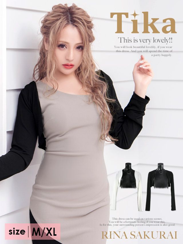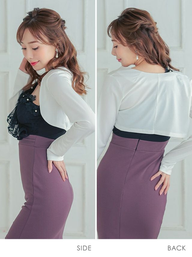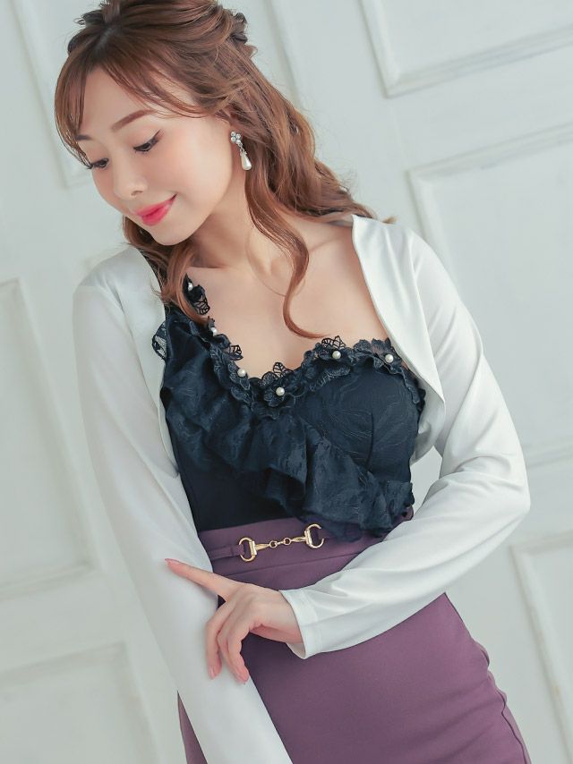 羽織り カーディガン 白 黒 キャバクラ myMinette マイミネット ロングスリーブショート丈ストレッチボレロ