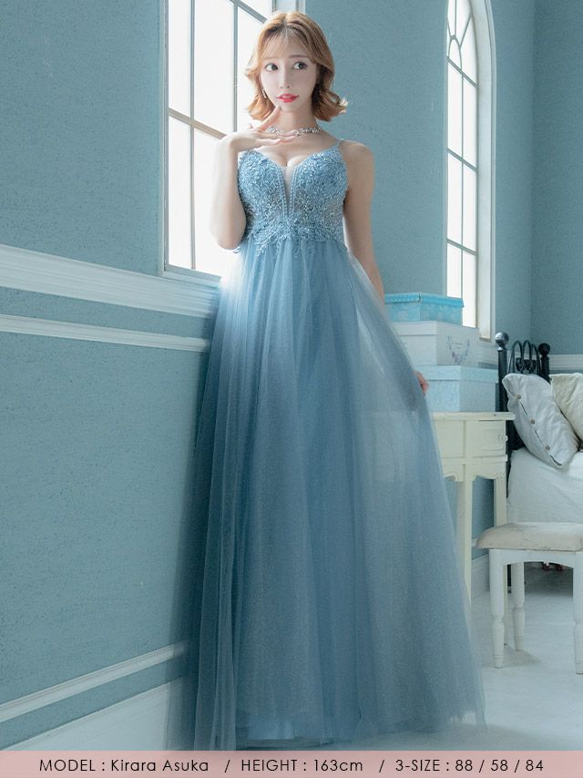 5. LA直輸入 胸元シースルーインポートバースデーAラインバースデーロングドレス (XSサイズ/Sサイズ) (愛沢えみり/キャバドレス着用)