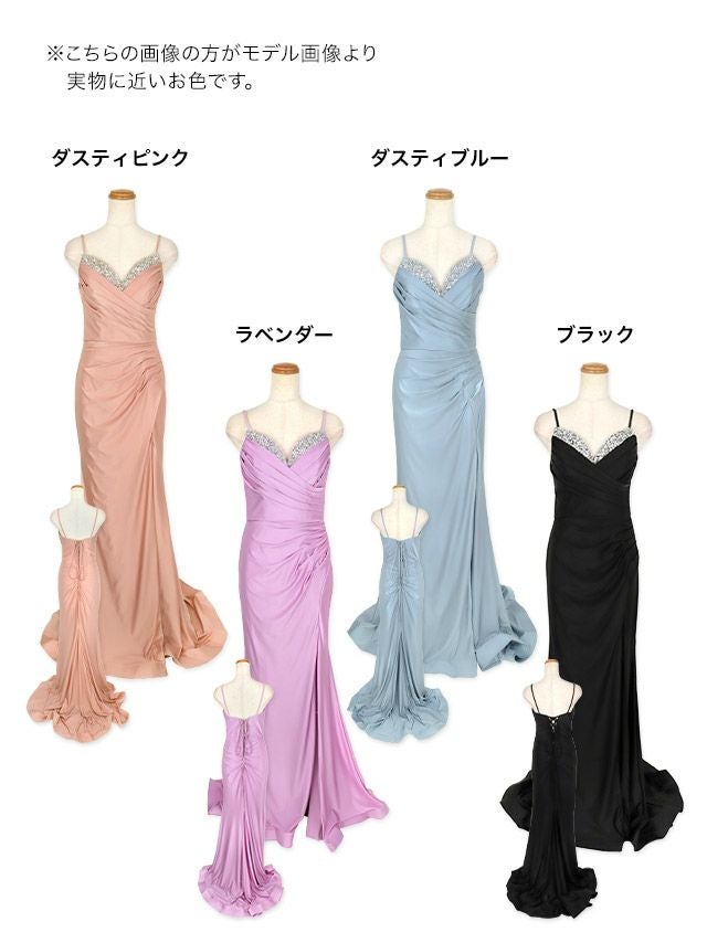 バックレースアップギャザーサテンスレンダーロングドレス