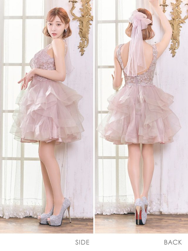 5. LA直輸入 エアリー刺繍レース×ビジューふわふわチュールバースデーフレアバースデーミニドレス (XSサイズ~Mサイズ) (/キャバドレス着用)