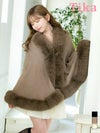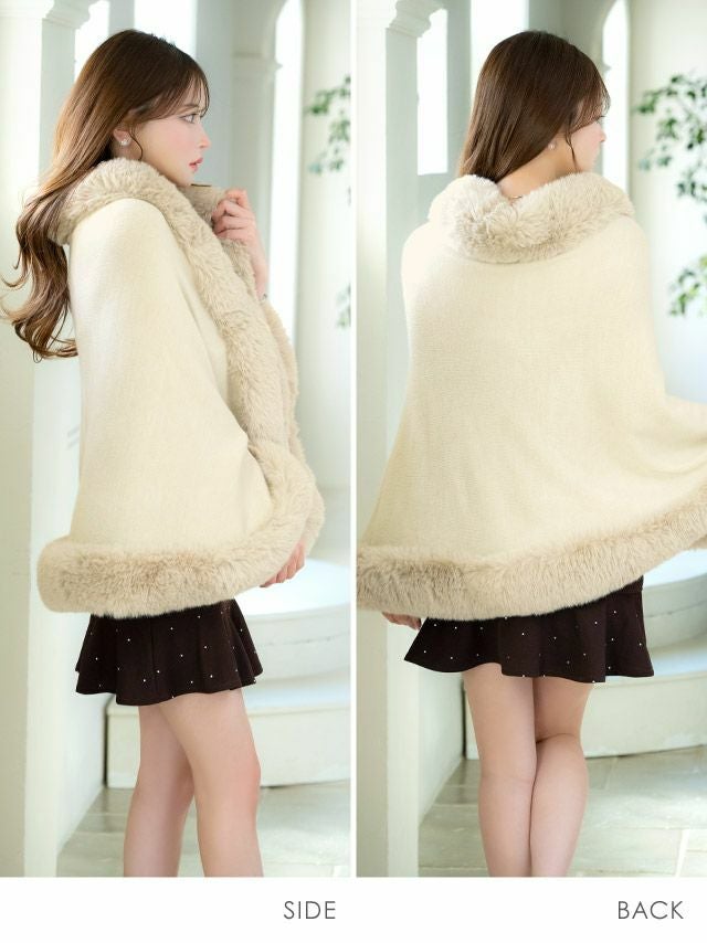 4. [新作] ボレロ ふわふわ フェイクファー付き ニット ポンチョ (黒崎みさ/羽織り着用) [Tika/ティカ]