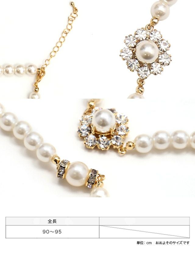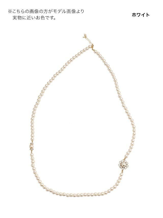 フラワーモチーフビジューホワイトパールロングネックレス