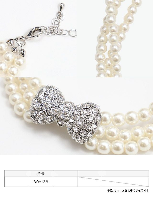 リボンビジューモチーフ3連パールチョーカーネックレス
