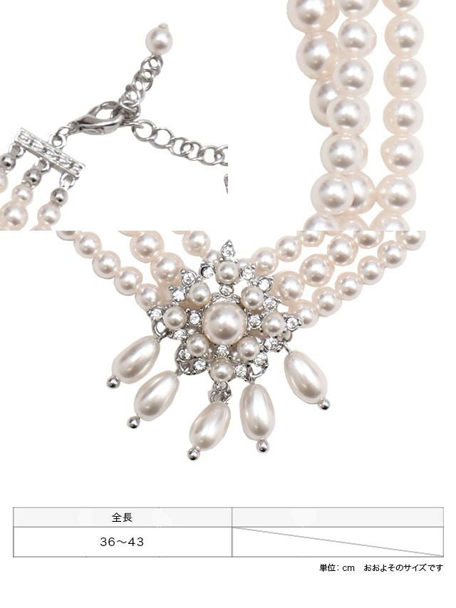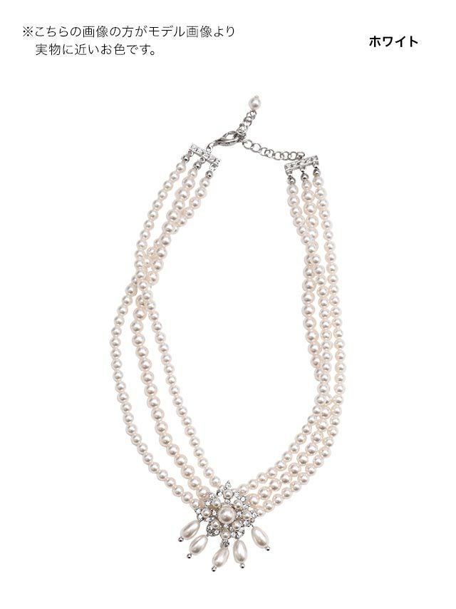 オーバルパール付きビジューモチーフ3連パールネックレス