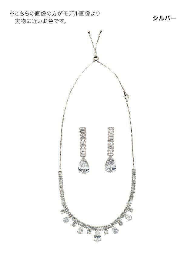 ゴージャスビジューストーンシルバーバースデーアクセサリー2点セット [バースデーネックレス+バースデーピアス]