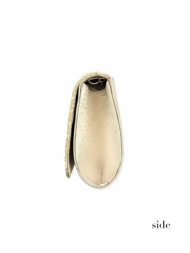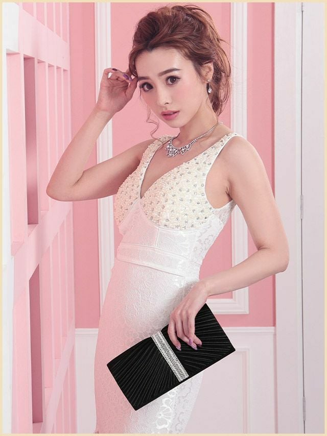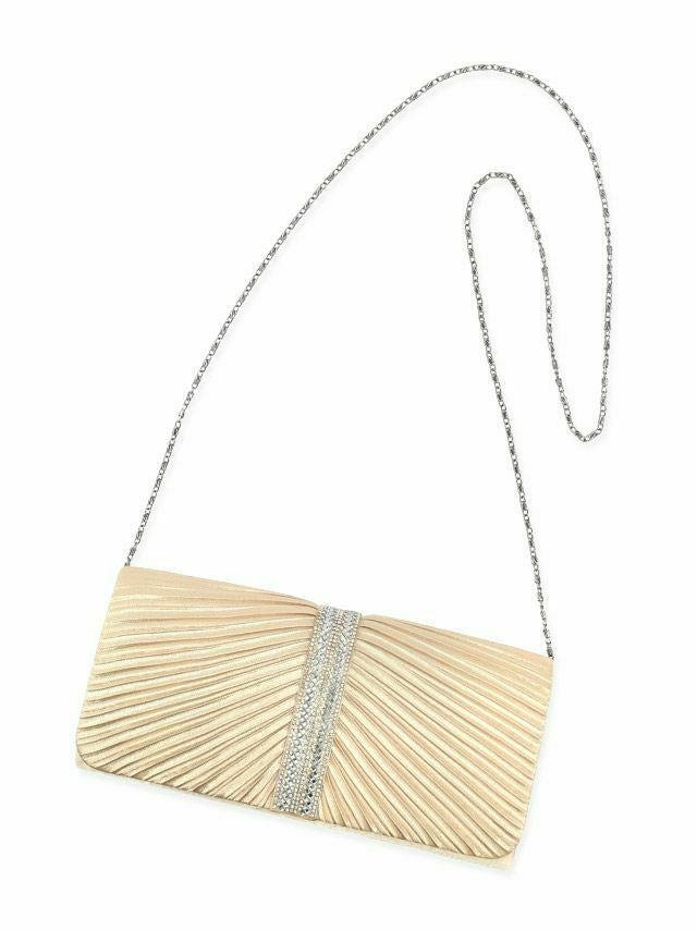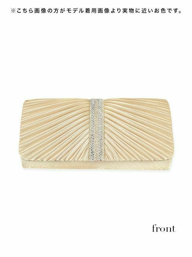 華やかなプリーツと輝くビジューストーンが特徴のゴージャスバッグ。