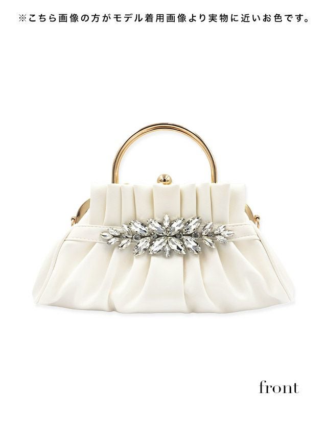 カットビジュープリーツ2wayがま口ハンドミニバッグのフロント