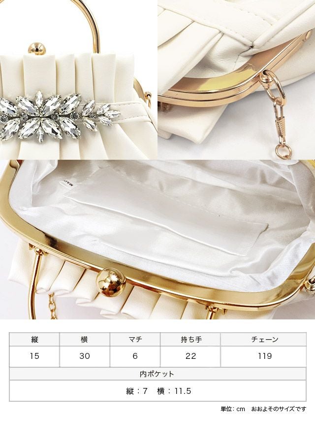 カットビジュープリーツ2wayがま口ハンドミニバッグのスペック