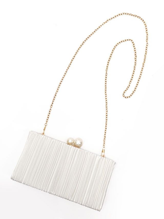 2wayチェーンショルダー付きプリーツがま口パールバッグのホワイトイメージ