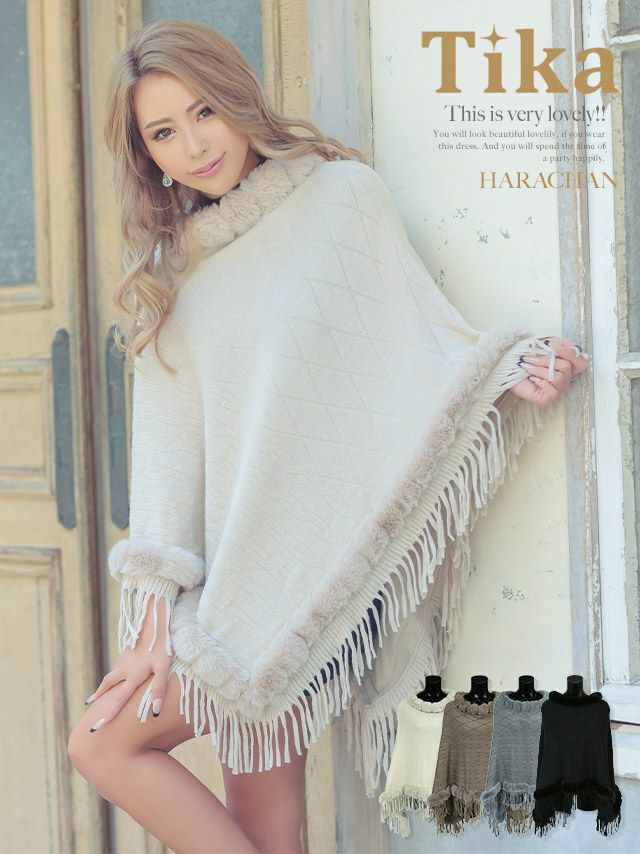 フリンジネックファーニットショール (みゆう/羽織り着用)