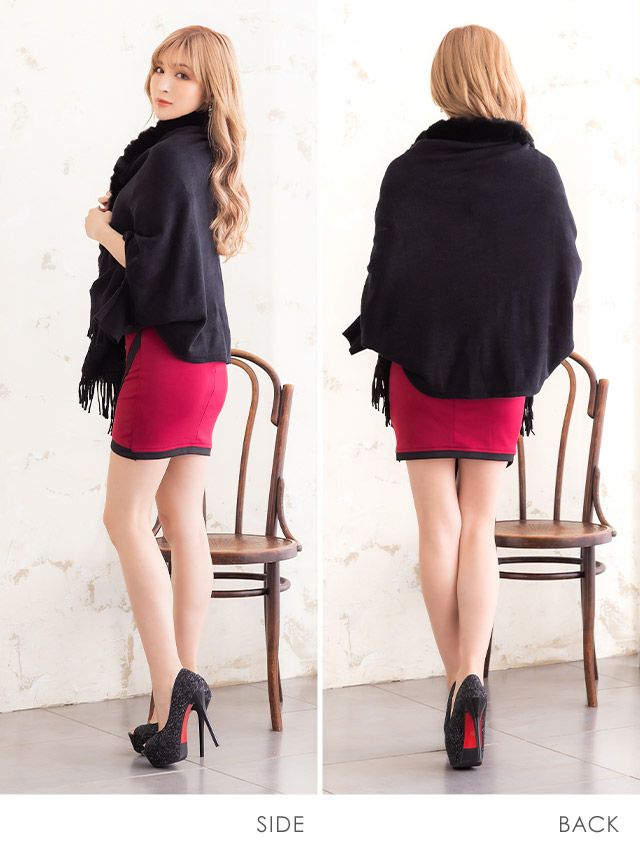 5. ファー付き大判フリンジニットショール (ハラちゃん/羽織り着用)