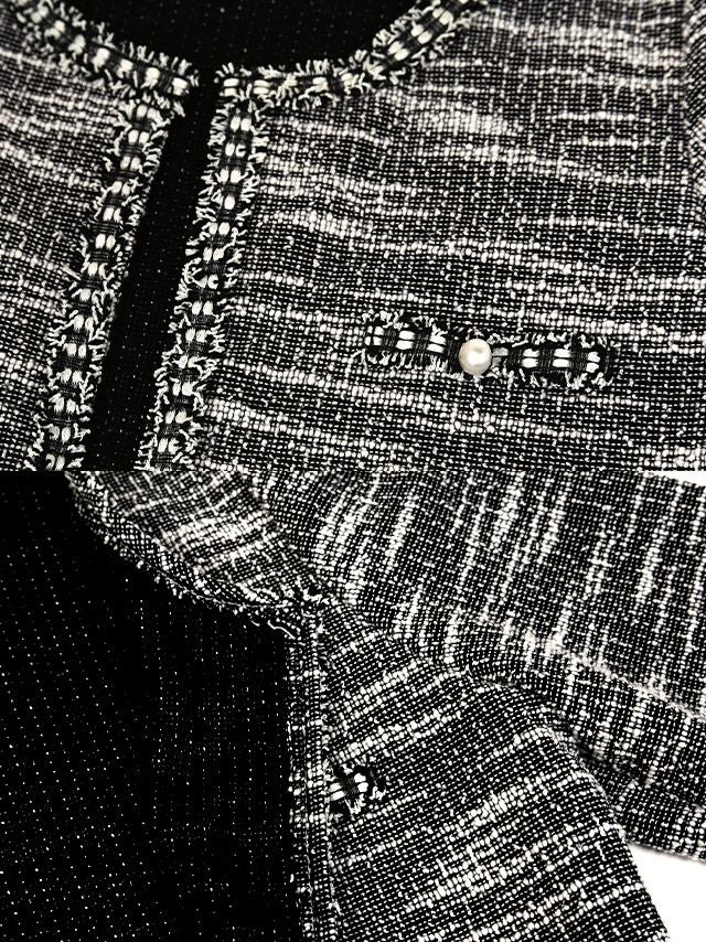 5. パール付きノーカラーニットボレロカーディガン (浦西ひかる/羽織り着用)