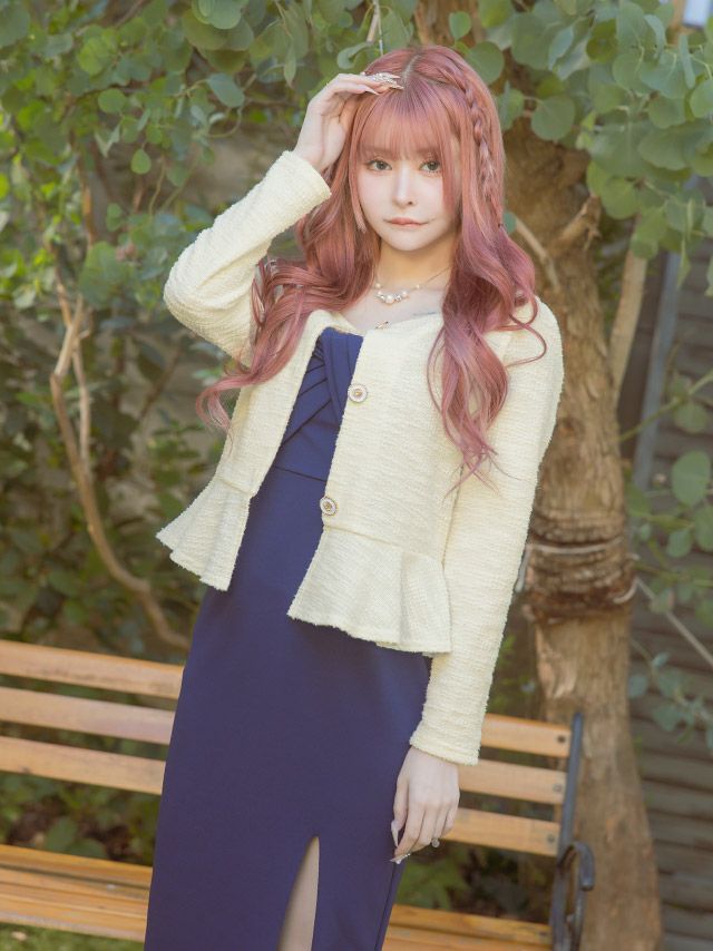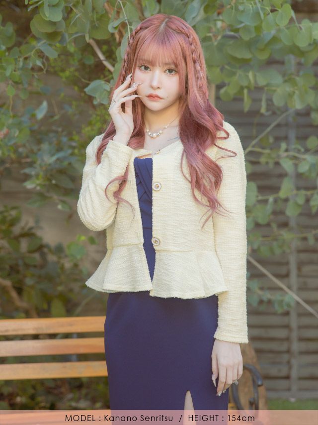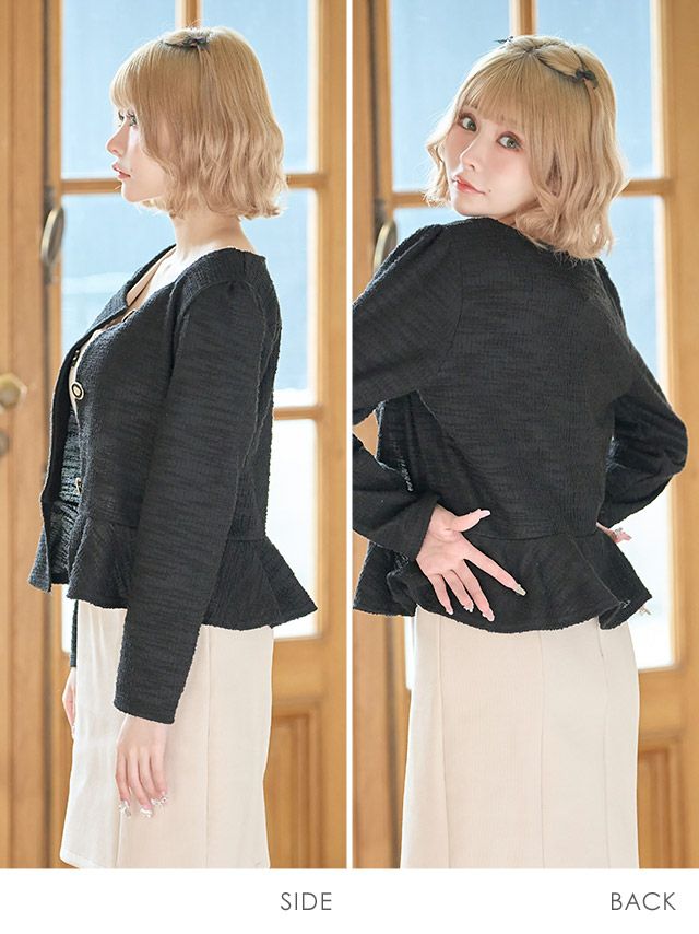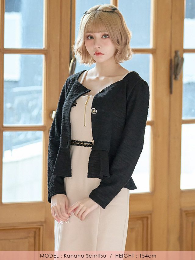 ノーカラーペプラムニットボレロカーディガン (戦慄かなの/羽織り着用)