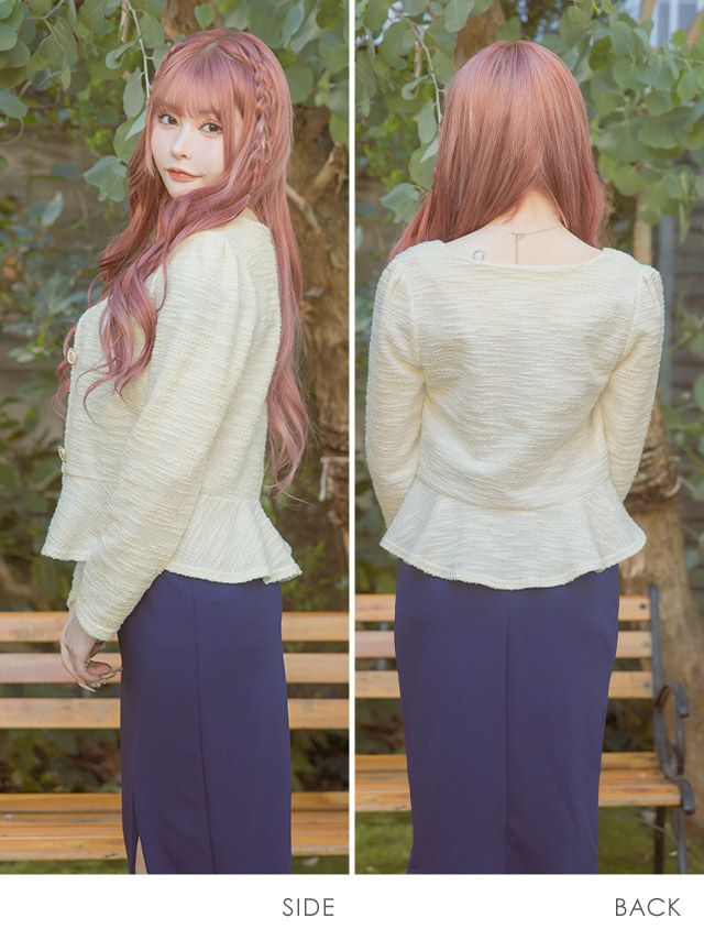 4. ノーカラーペプラムニットボレロカーディガン (戦慄かなの/羽織り着用)
