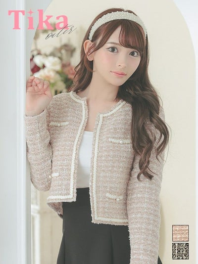 ツイード風縁取りボレロカーディガン (浦西ひかる/羽織り着用)
