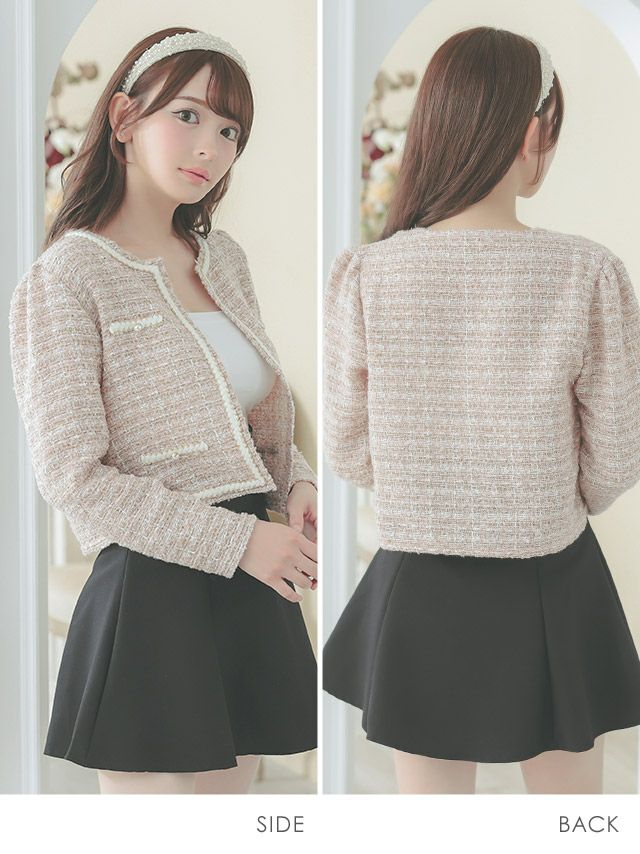 ツイードデザインパールビジューガーリー長袖ボレロ
