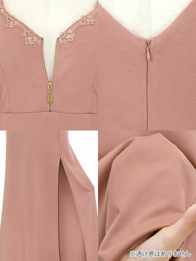 フェミニンな雰囲気と色気漂う欲張りディティール♡ タイト ロングドレス 谷間 レース 大人 スリット ストレッチ 五部袖 ウエストベルト付き ジップ ベルスリーブ ブラジャーのまま キャバドレス (黒嵜菜々子着用) [Tika/ティカ]