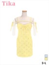 5. [新作] ミニドレス キャミソール コード リボン 谷間 フラワービジュー キラキラ ツイード タイト ライトブルー キャバドレス (若林萌々着用) [tk-md10977] [Tika/ティカ]