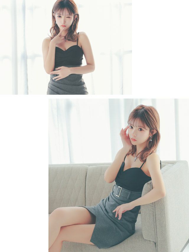 5. [アウトレット]バイカラー ウエストベルト セクシー ギャザー キャミソール タイトミニドレス (Sサイズ~XLサイズ) (聖菜/キャバドレス着用)