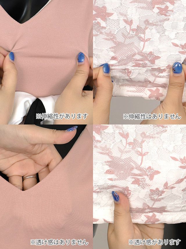 オフショルダーフリル袖ウエストリボンフラワーレースペプラムタイトミニドレスのディティール2枚目
