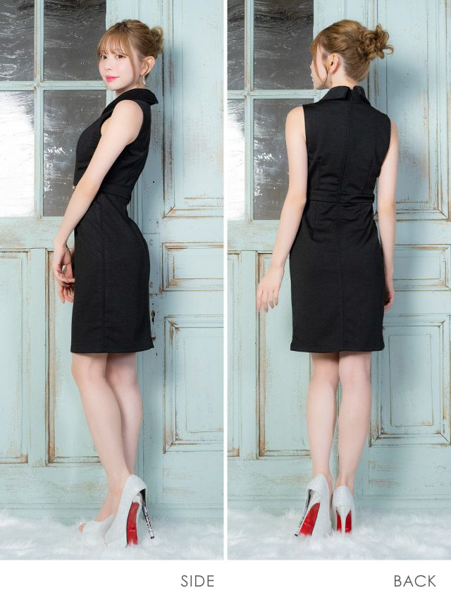 4. [新作] ミニドレス タイト 谷間 シンプル ノースリーブ 襟付き バストカット ジップ ブラジャーのまま ワンカラー キャバドレス (聖菜着用) [tk-md213679b] [Tika/ティカ]