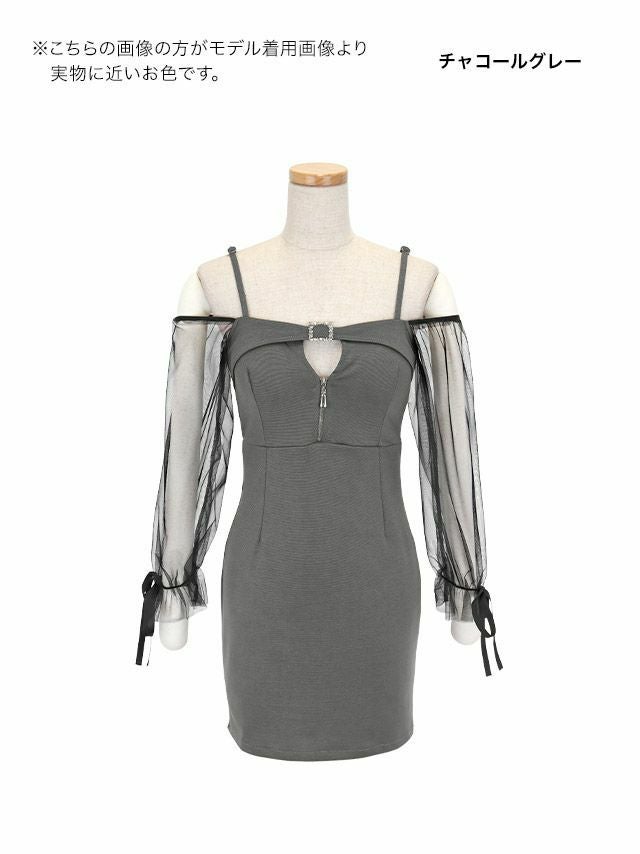 タイトミニドレス長袖谷間ストレッチ肩出し二の腕カバージップパフスリーブキャバドレスのカラー