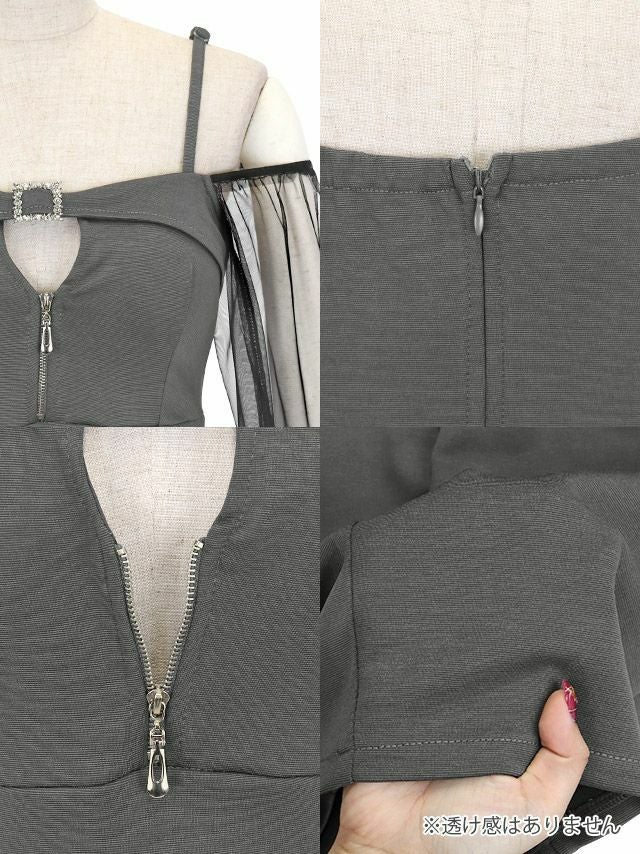 タイトミニドレス長袖谷間ストレッチ肩出し二の腕カバージップパフスリーブキャバドレスのディティール1枚目
