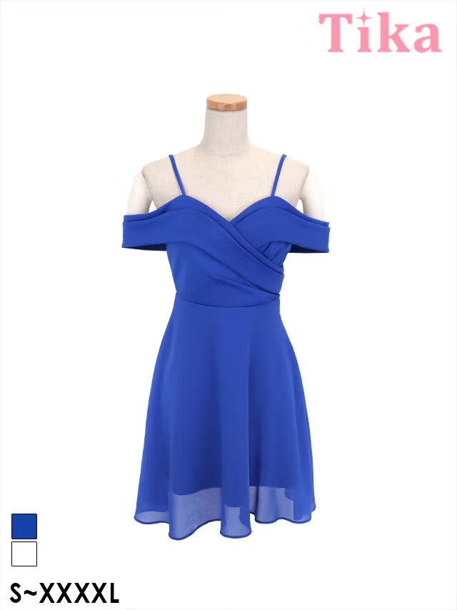 ミニ丈 キャバクラ クラブ ラウンジ ミニドレス 肩あき シフォン谷間 バストクロス Aライン ワンカラー XL XXL 4L 5L 大きいサイズ 白 キャバドレス