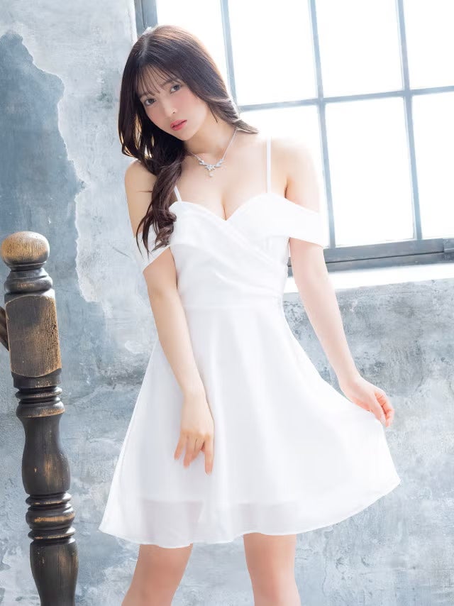 5. [新作] ミニドレス 肩あき シフォン谷間 バストクロス Aライン ワンカラー XL XXL 4L 5L 大きいサイズ 白 キャバドレス (黒嵜菜々子着用) [tk-md25122-h] [Tika/ティカ]