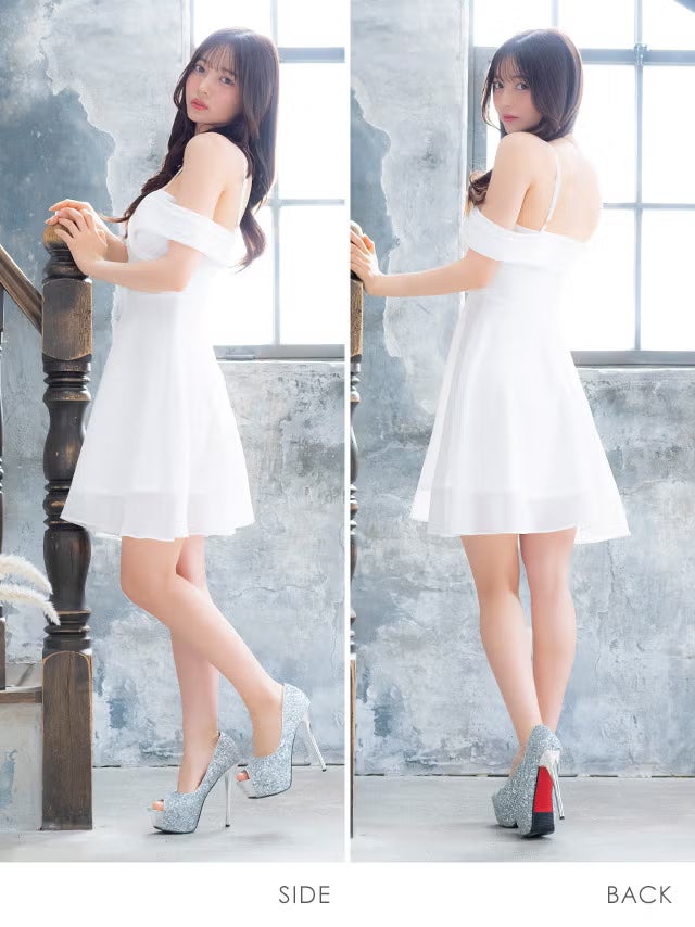 4. [新作] ミニドレス 肩あき シフォン谷間 バストクロス Aライン ワンカラー XL XXL 4L 5L 大きいサイズ 白 キャバドレス (黒嵜菜々子着用) [tk-md25122-h] [Tika/ティカ]