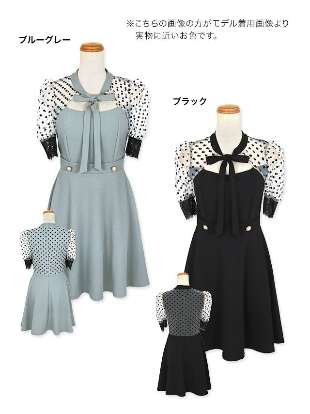 ドット柄シアー半袖ネックリボンフレアミニドレスのカラー
