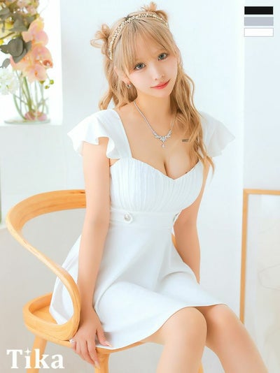 5. [アウトレット]バストギャザーノースリーブフリル袖ハイウエスト切替フレアミニドレス (Sサイズ~Lサイズ) (黒嵜菜々子/キャバドレス着用) [Tika/ティカ]