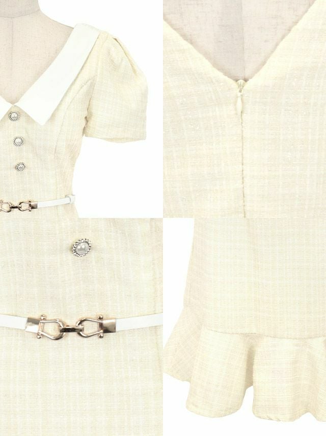 ベルト付き チェルシーカラー 半袖 パフスリーブ ツイード 裾フリル 襟付き タイトミニドレスの詳細画像1枚目