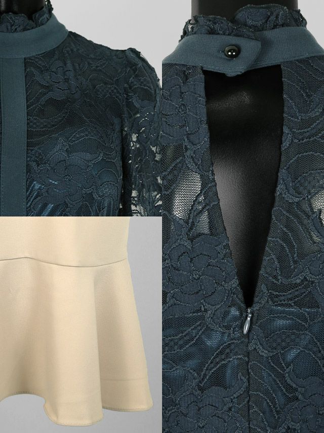ハイネックフラワー刺繍レースマーメイドミディアムドレス ハイネックフラワー刺繍レースマーメイドミディアムドレス