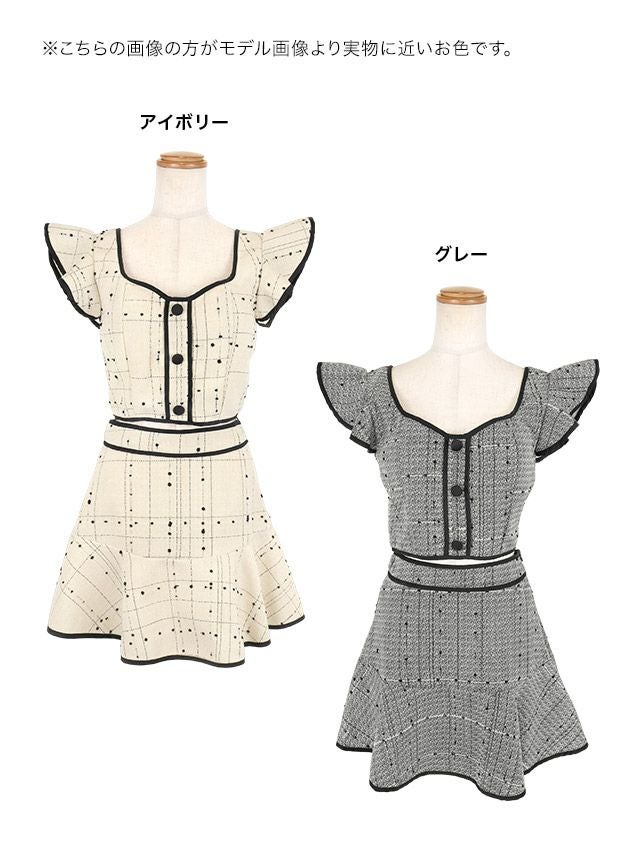 ノースリーブフリル袖ツイードパイピングセットアップフレアミニドレスのカラー