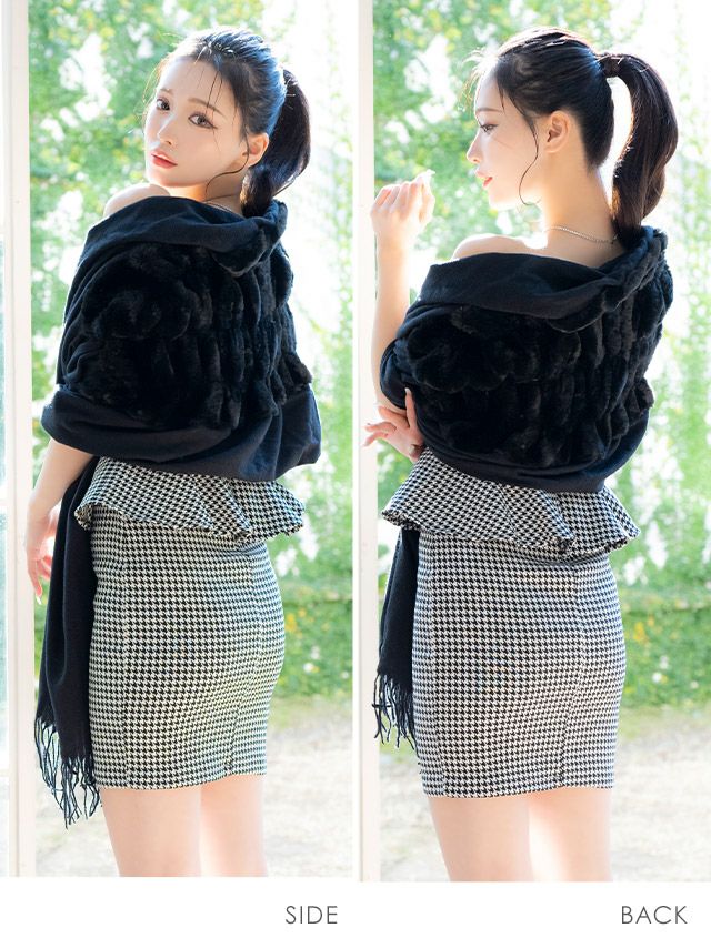 バックフェイクファーデザインニットショールのサイドバック