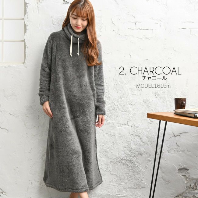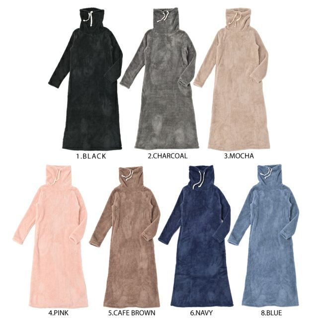 4. ルームウェア ボアハイネックマキシワンピース (ブラック/チャコール/モカ/ピンク/カフェブラウン/ネイビー/ブルー)