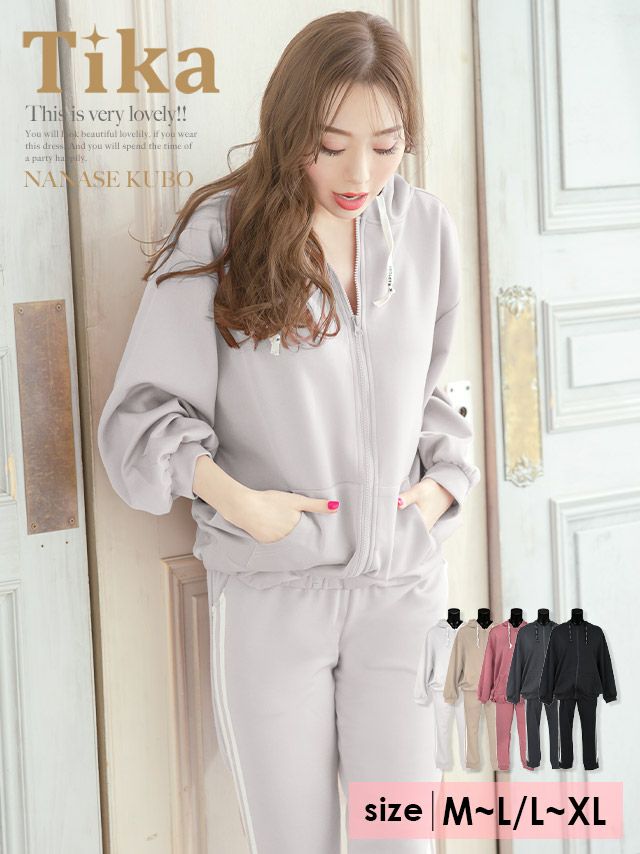 ダンボールニットファスナーパーカーラインパンツ上下セットのカラーバリエーション