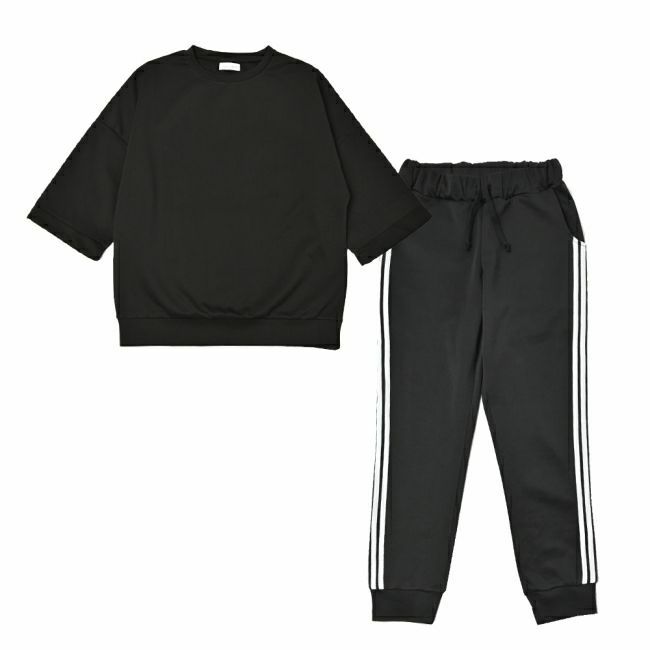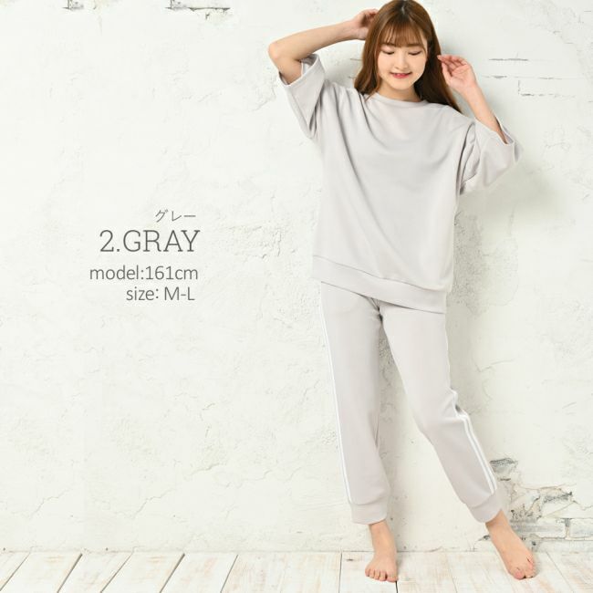 4. ルームウェア 七分袖トップスラインパンツ上下セット (ブラック/チャコール/グレー/クラシックピンク/モカ)