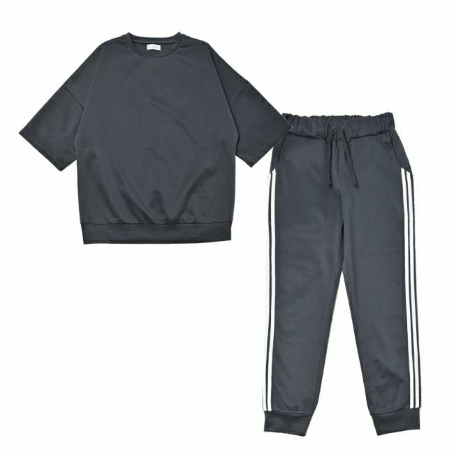 ルームウェア 七分袖トップスラインパンツ上下セット (ブラック/チャコール/グレー/クラシックピンク/モカ)