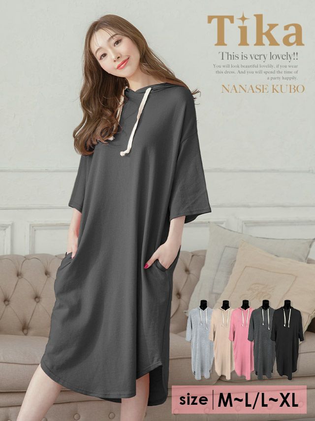 スウェットラウンドヘムフード付き七分袖ワンピのカラーバリエーション