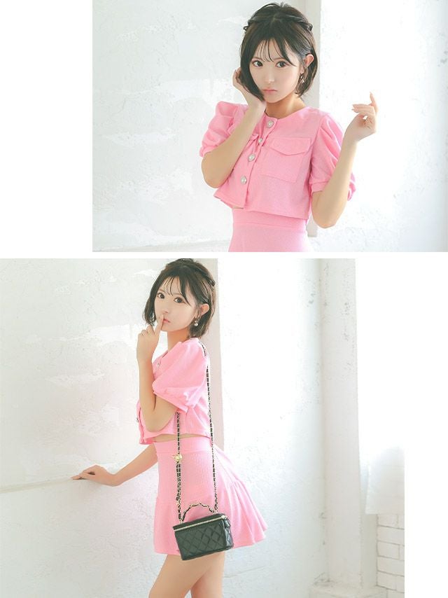 4. 半袖パフスリーブボタンセットアップフレアミニドレス (Sサイズ~Lサイズ) (聖菜/キャバドレス着用)