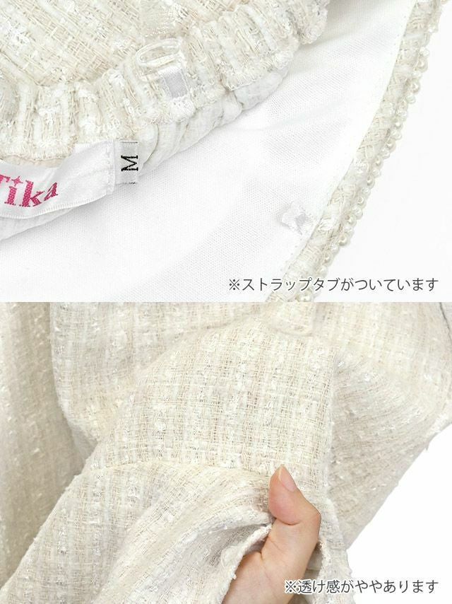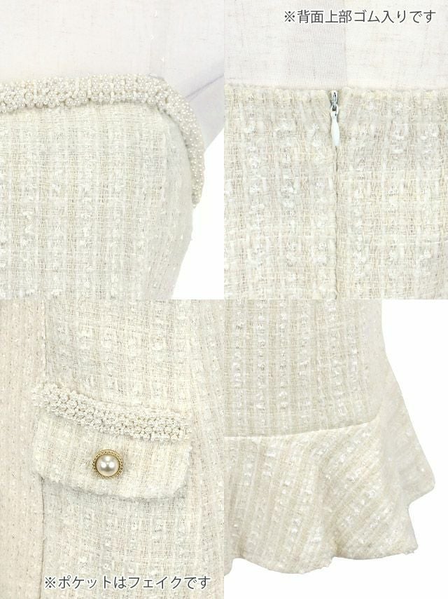 4. [アウトレット] タイト ミニドレス 上品 ツイード 裾フリル ベア パール フェイクポケット キャバドレス (若林萌々着用) [Tika/ティカ]