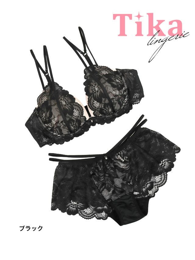 ヌーディーフラワーレースコードデザインカップブラジャー&ショーツ2点セットカラバリ