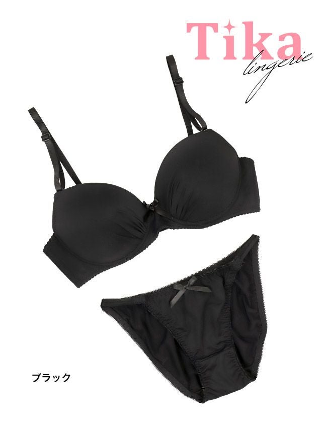 シームレスリボンワンカラーカップブラジャー&ショーツ2点セット