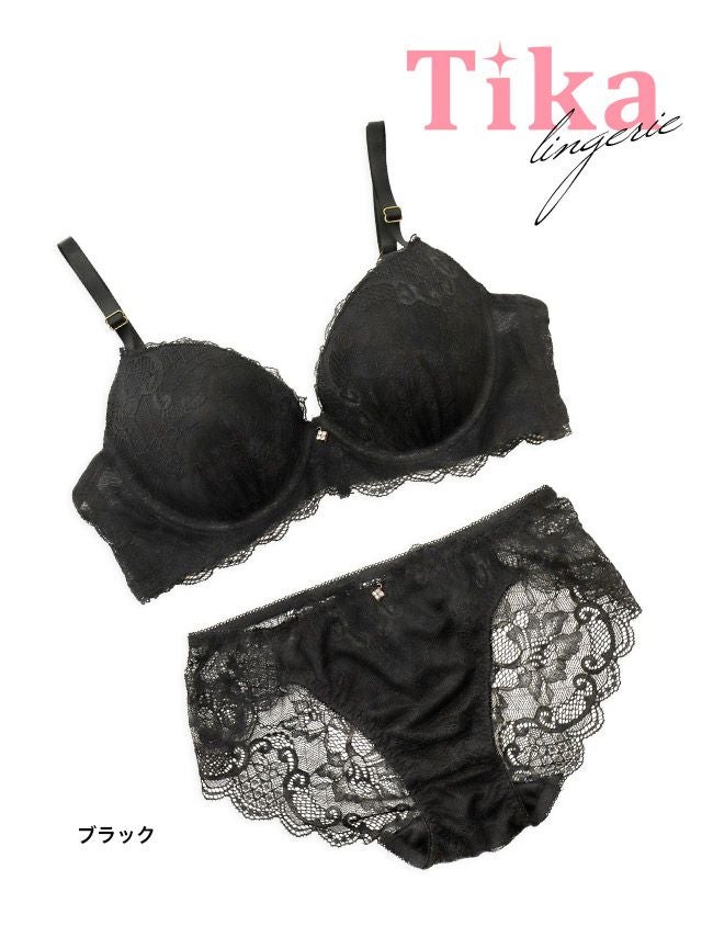 3. 勝負下着 セクシー ランジェリー スカラップラグジュアリーワンカラーレースブラ&ショーツ2点セット