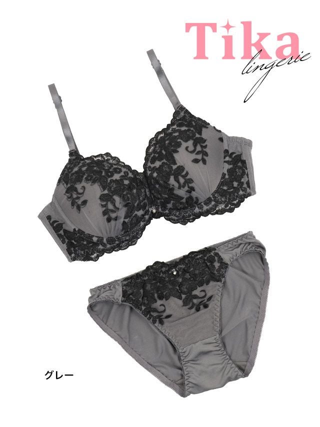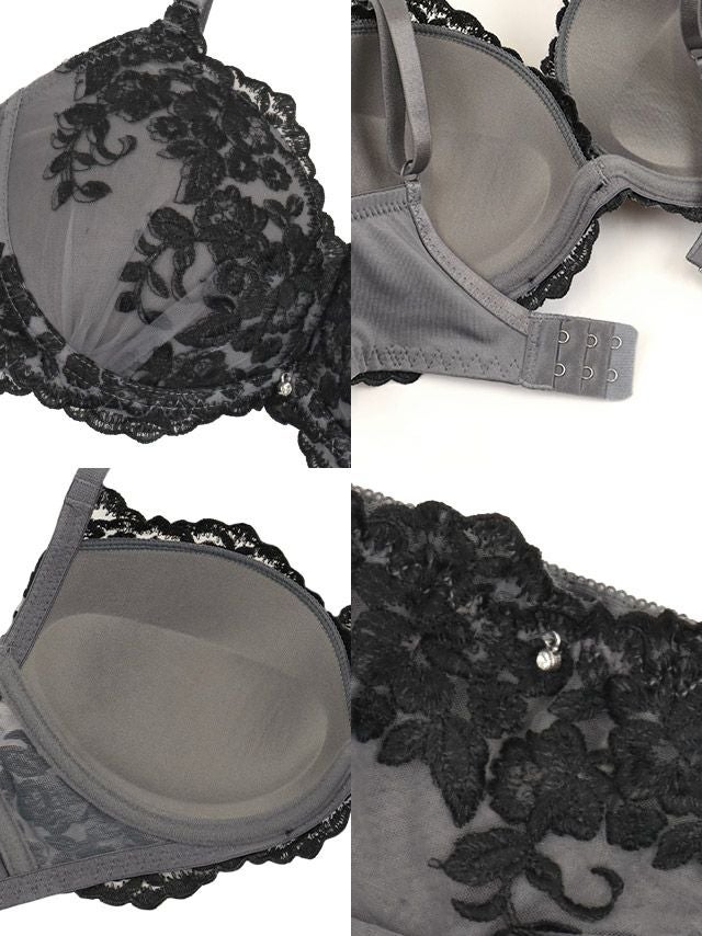 シアーチュールビジューチャーム付きセクシー脇高カップブラジャー&ショーツ2点セットc